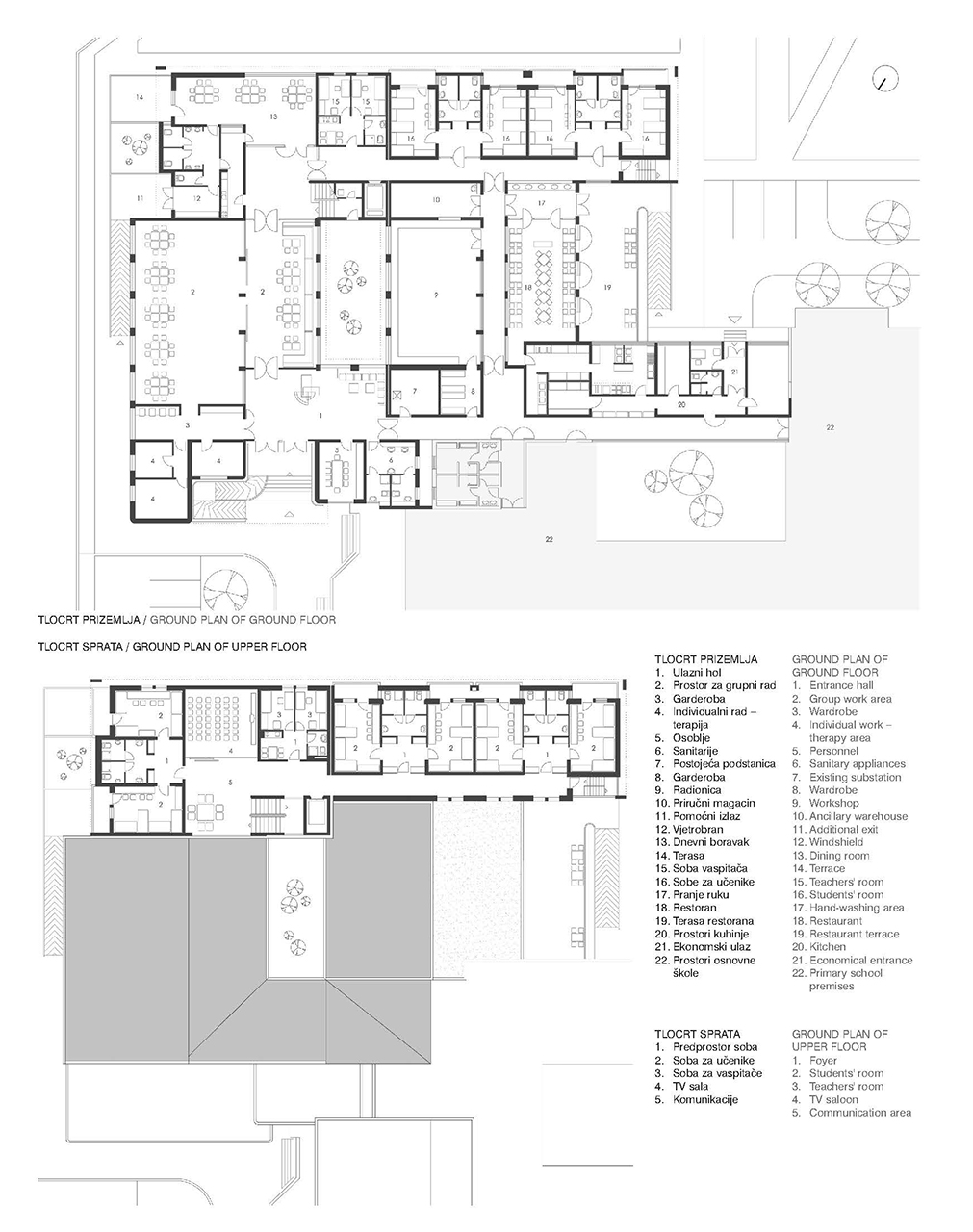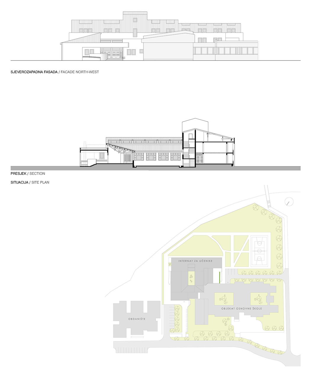 Internat za učenike projektovan je uz postojeći objekat osovne skole namijenjenoj obrazovanju djece koja su na različite načine ometena u svom ranom razvoju. Ovaj objekat treba da pretstavlja integralnu cjelinu sa postojećom školom i svim njenim sadržajima.